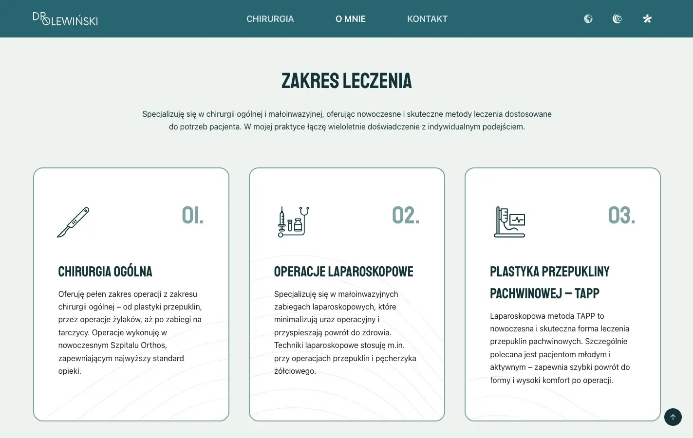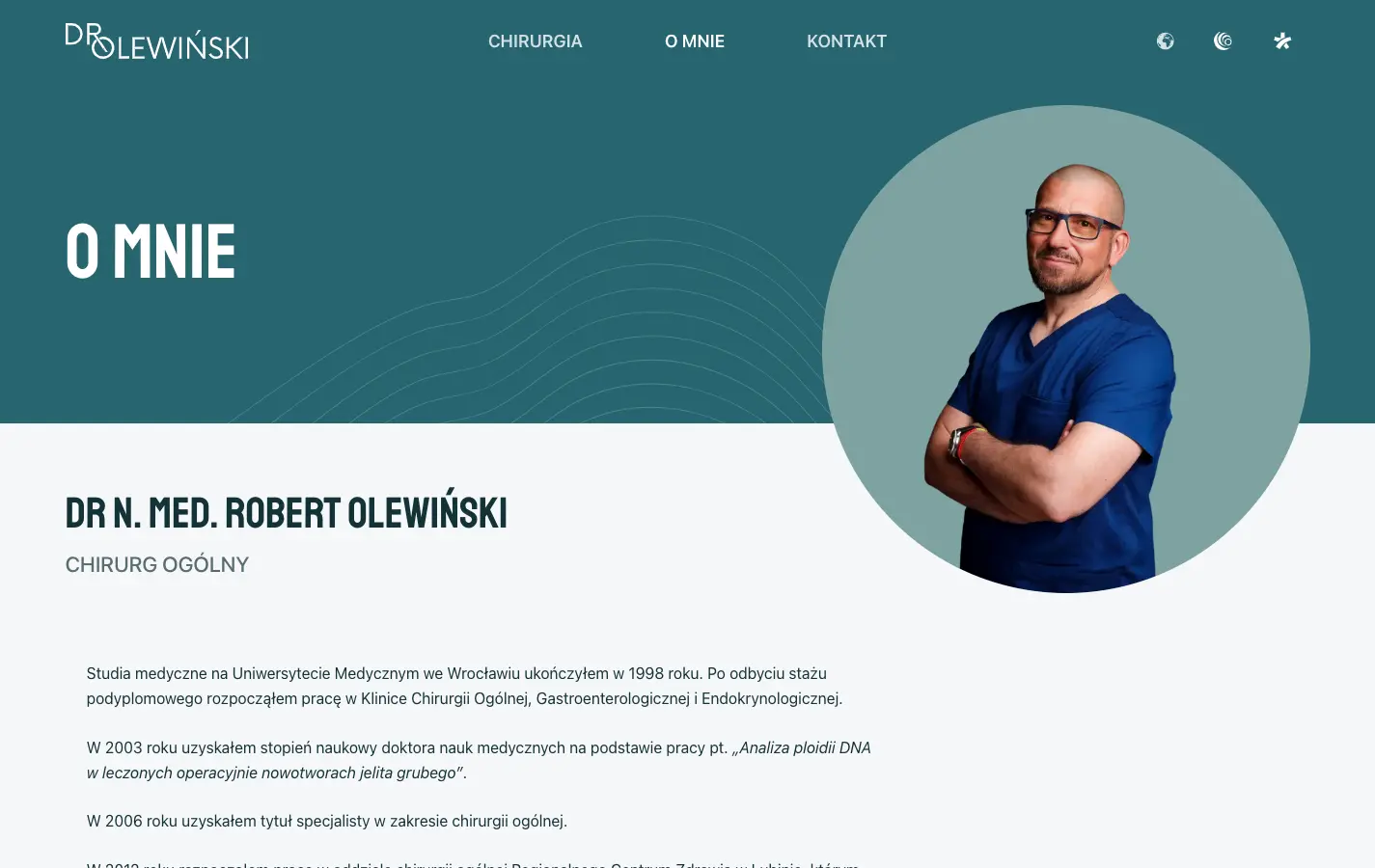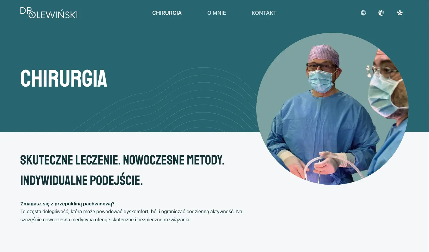 Strona internetowa dr-olewinski.pl to projekt stworzony dla indywidualnego specjalisty – chirurga z wieloletnim doświadczeniem.