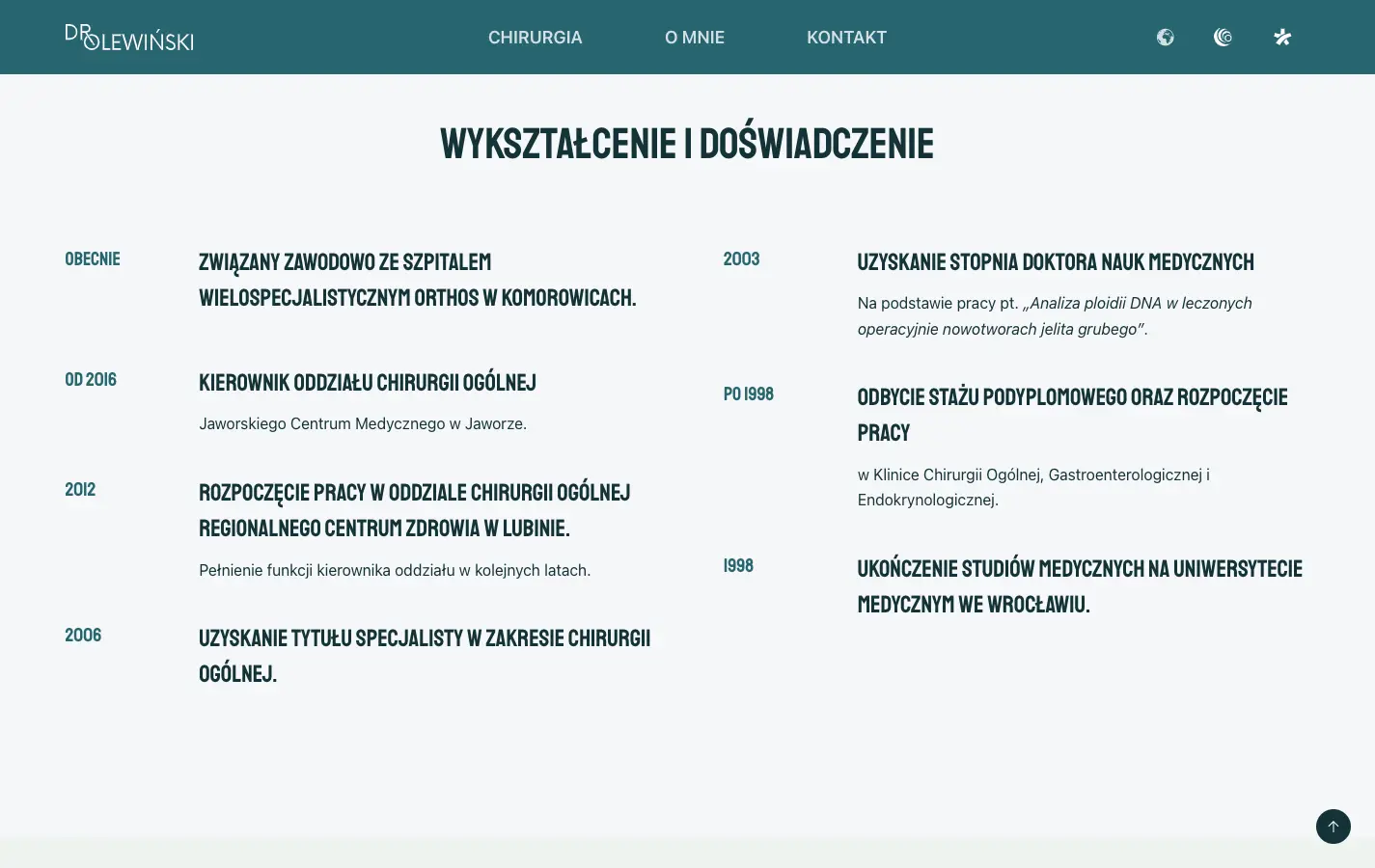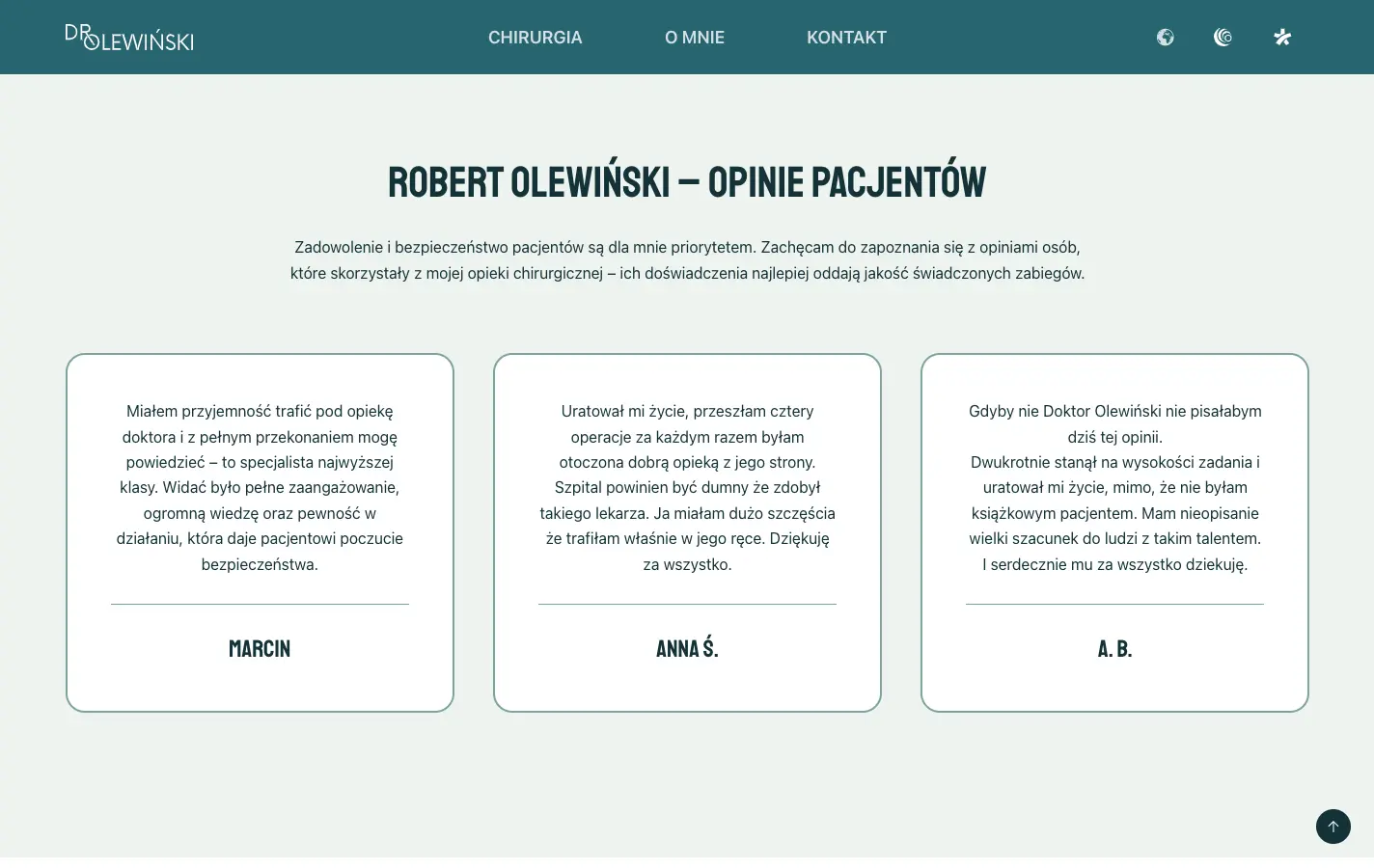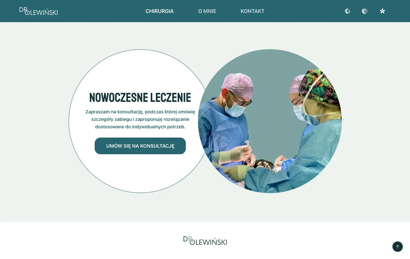 Strona internetowa dr-olewinski.pl to projekt stworzony dla indywidualnego specjalisty – chirurga z wieloletnim doświadczeniem.